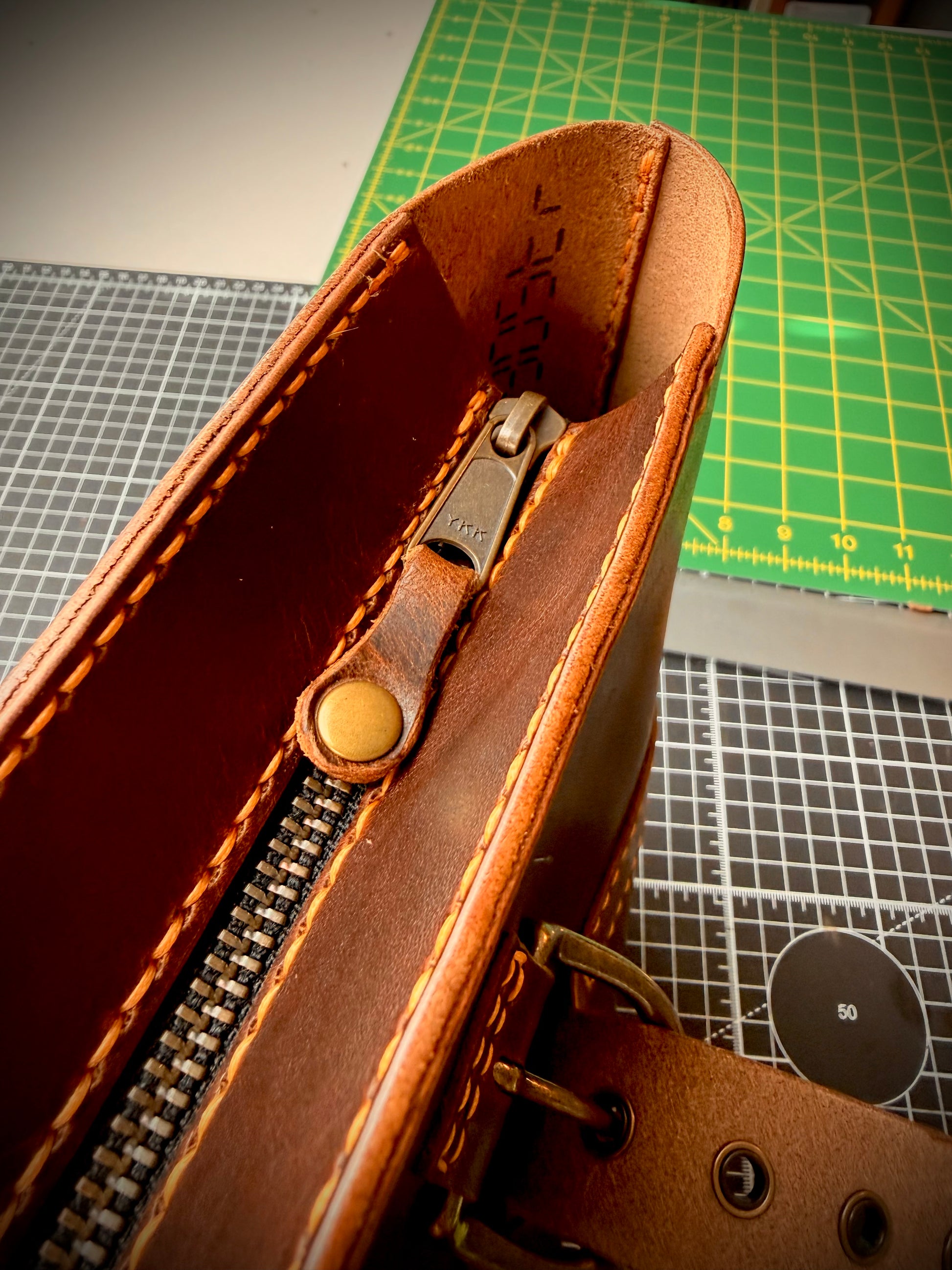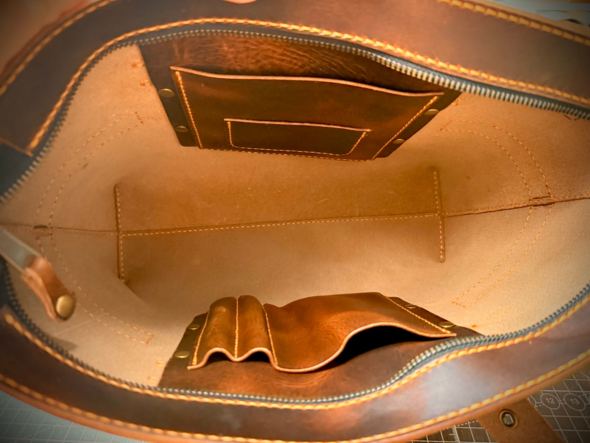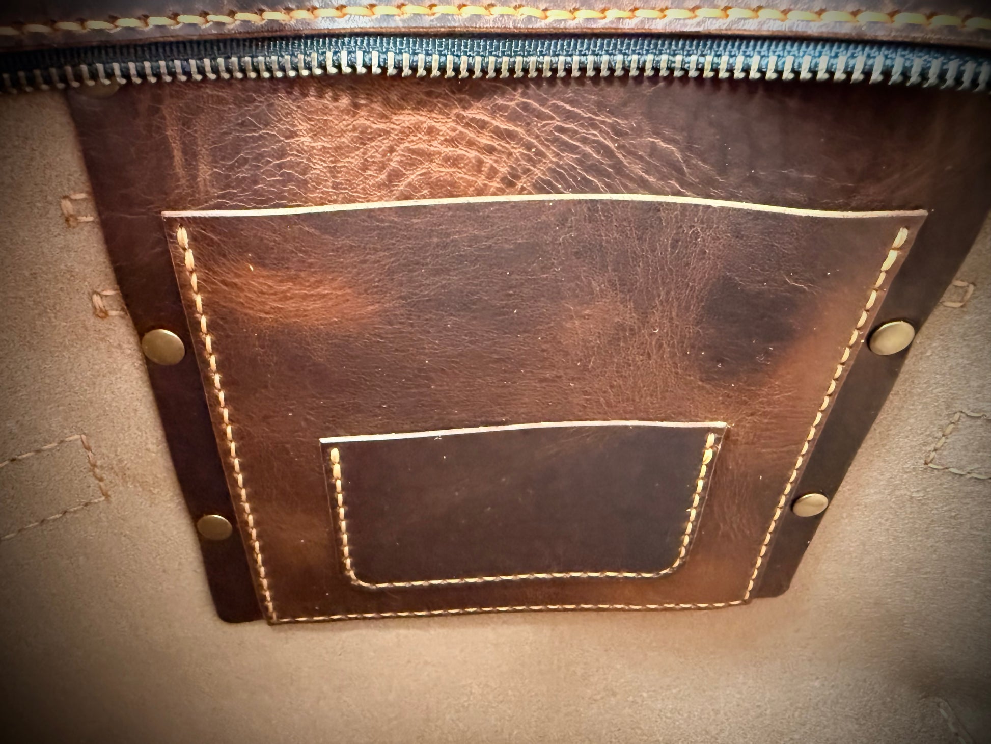 Crafted from Derby leather produced by the renowned Horween Leather Company, this Dark Brown NAMU Tote Bag showcases a vegetable-tanned finish that reveals beautiful golden pull-up tones with every bend and movement, emphasizing its natural character. Designed by The Creative Awl, whose patterns are celebrated for their blend of practicality and aesthetics, the tote features meticulous hand-stitching performed with durable Ritza Tiger waxed thread in Colonial Tan, ensuring strength and refined detail. Solid brass hardware complements the leather’s rich hue, enhancing both durability and elegance.