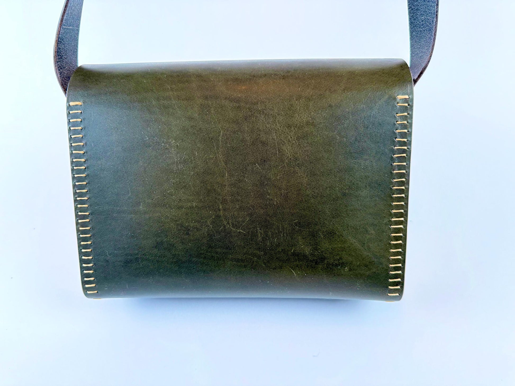 Handmade green leather cross-body bag/purse, made from high quality top/full grain leather from the Tannery Row in Chicago.