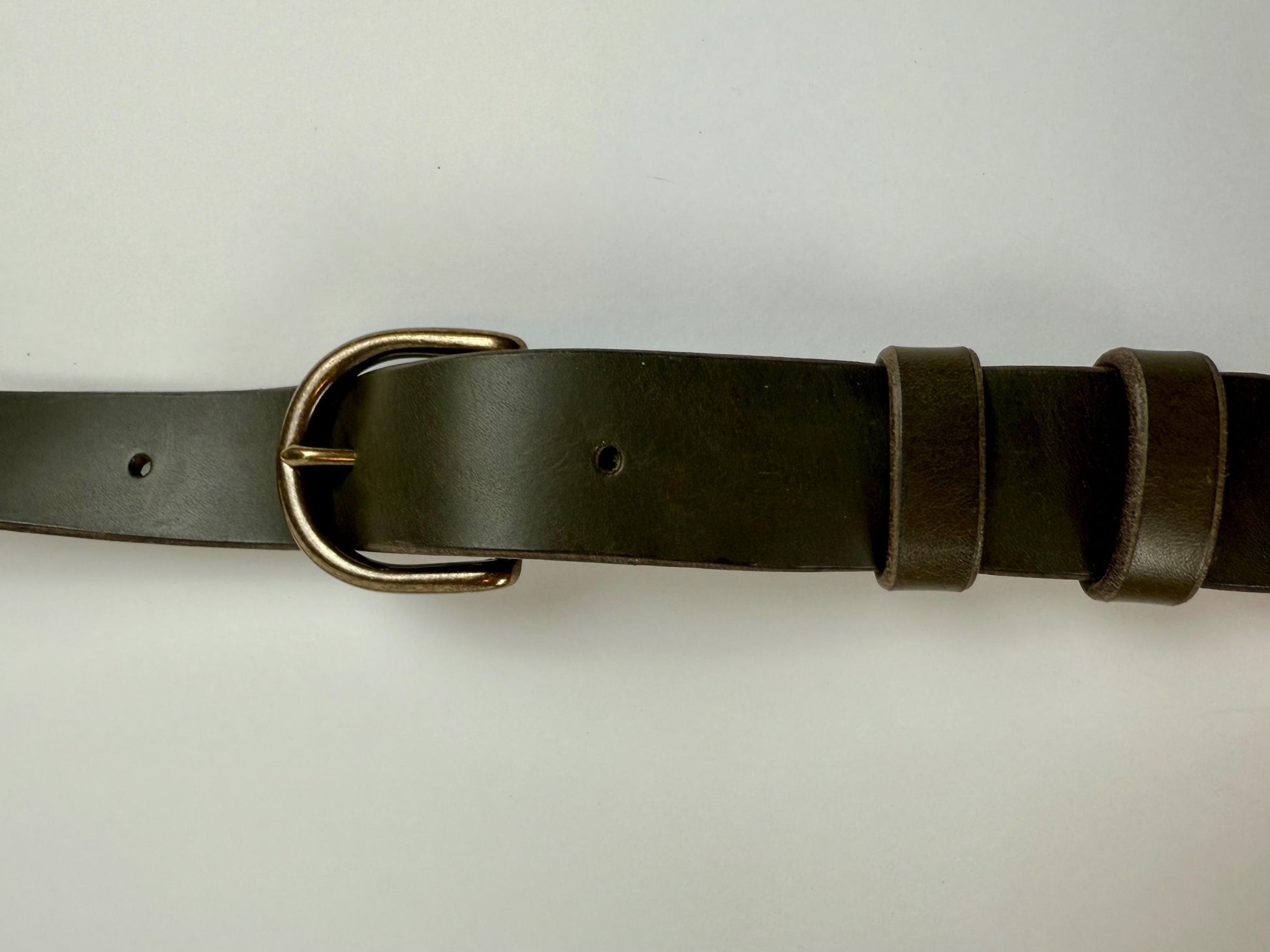 This is an unlined bag, however, the inside of the leather has been finished to a smooth and nearly-black finish. Simplicity is key with this bag, as there are no interior or exterior pockets. The handles are attached with antique brass rivets and has an adjustable brass buckle if you prefer your bag to hang longer or shorter. Closure is a solid antique brass slide latch. Stitches are using a yellow/gold waxed thread.