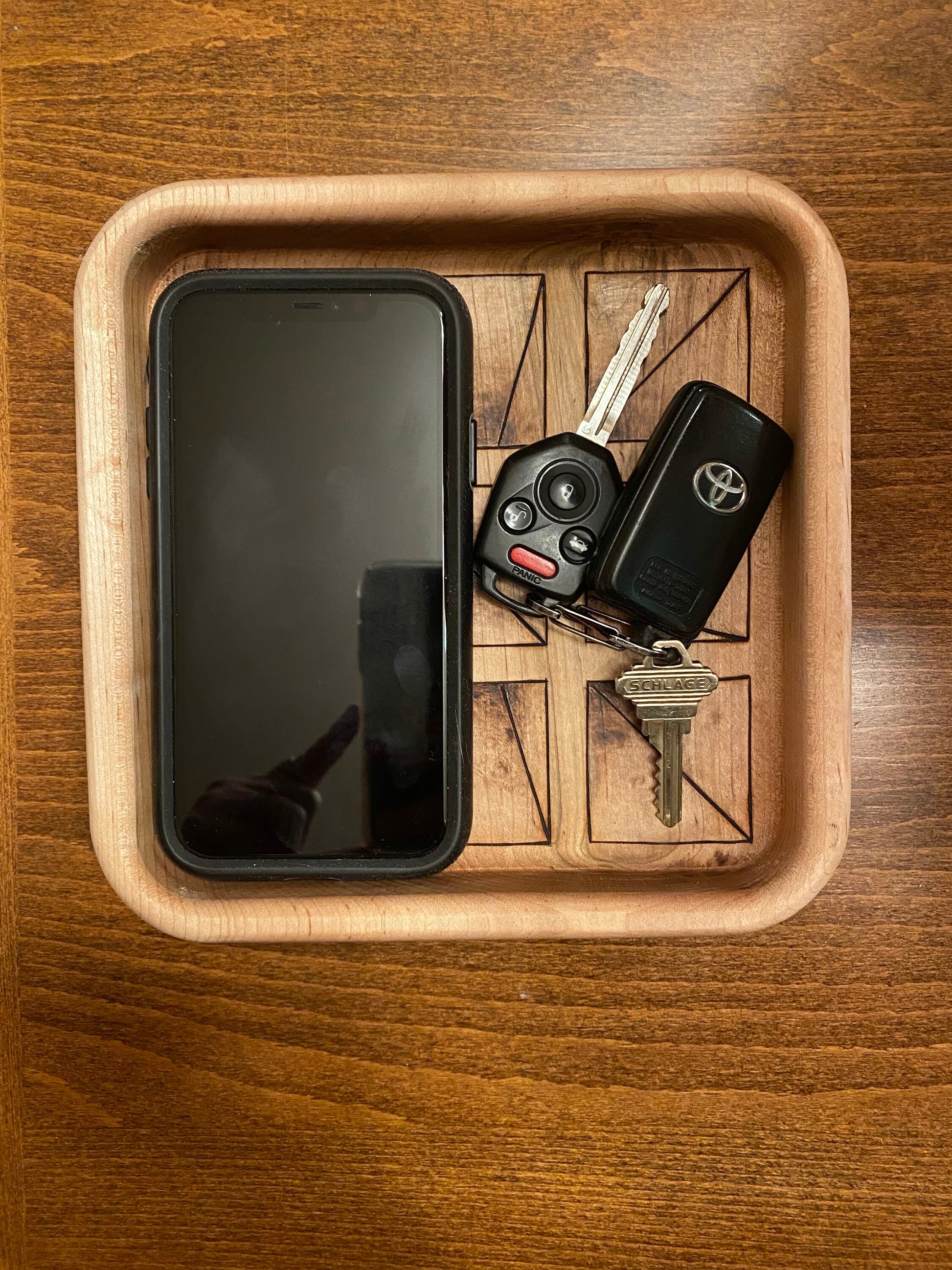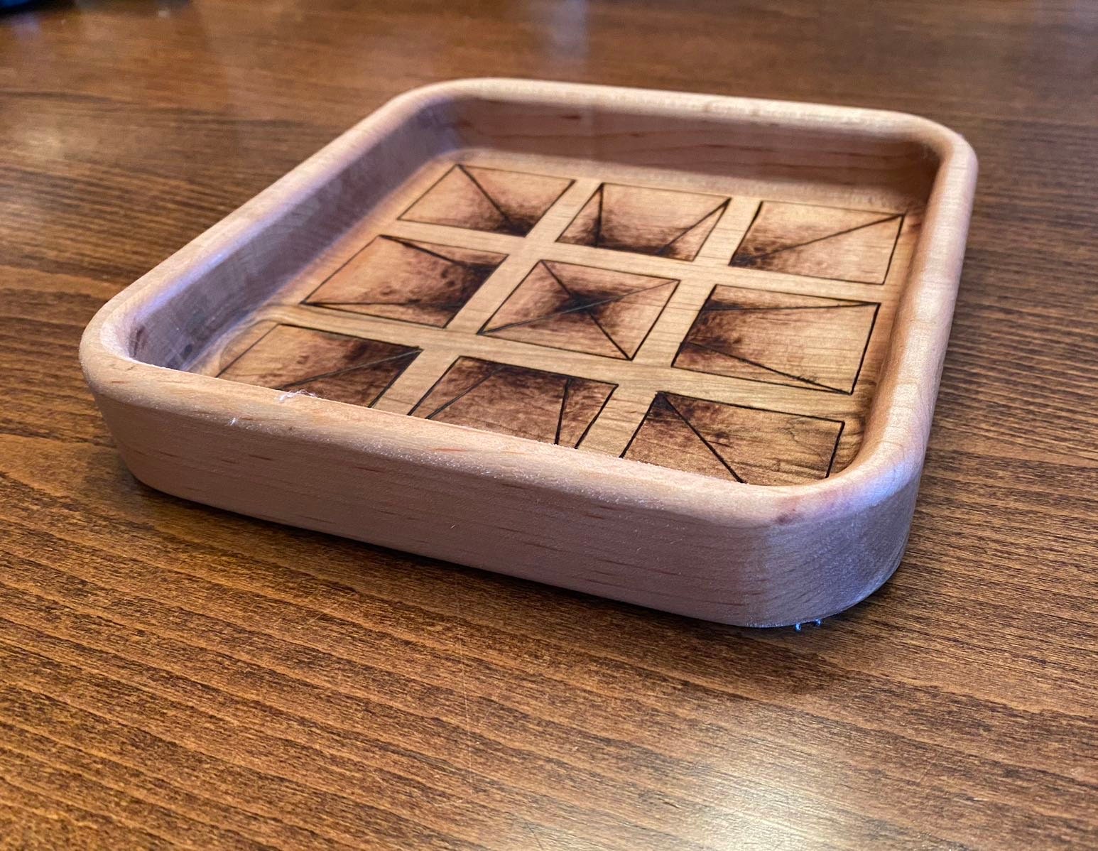 Handmade Keepsake/Valet Tray - 3D Squares Design - Woodburned (Pyrography)