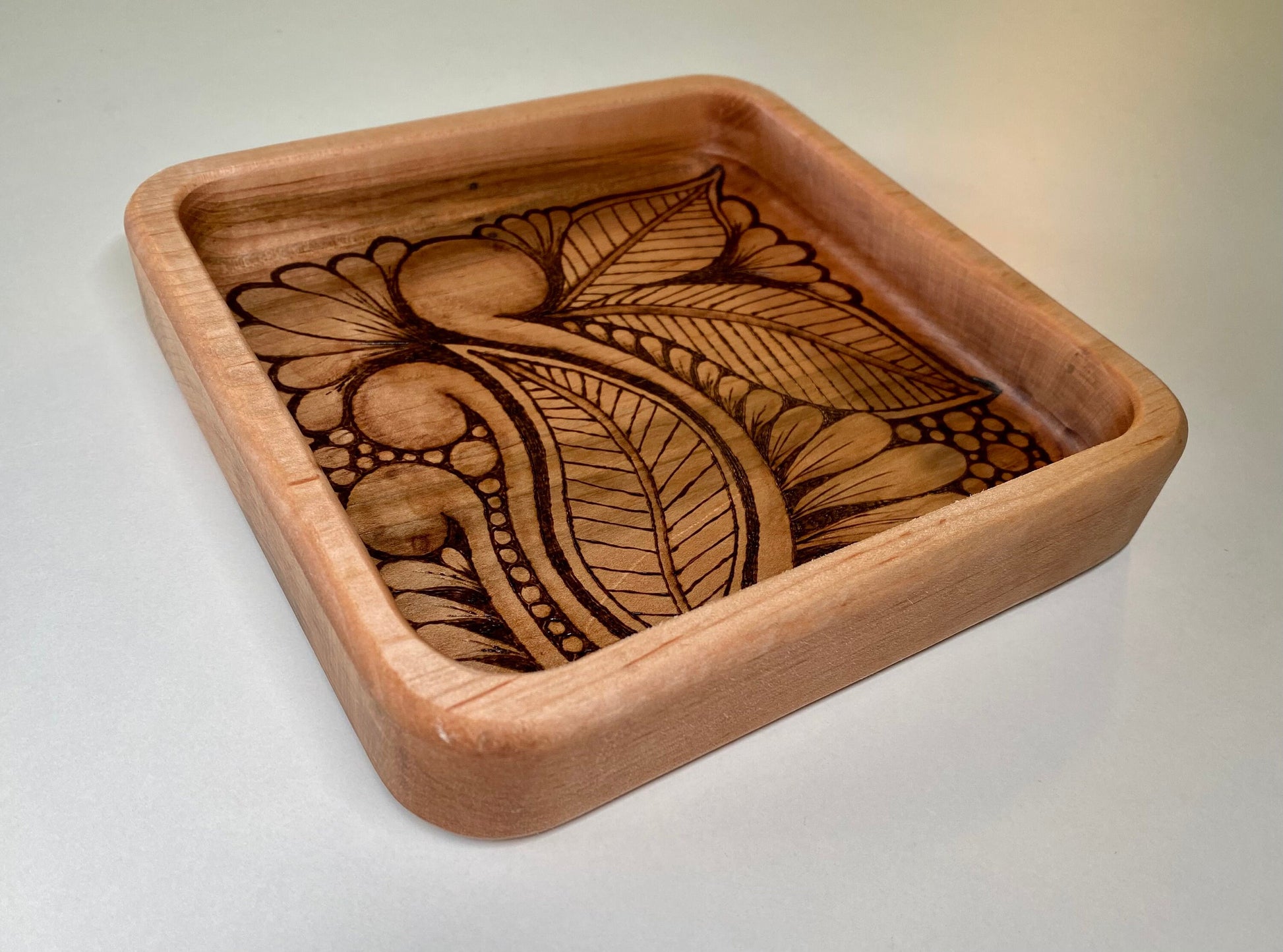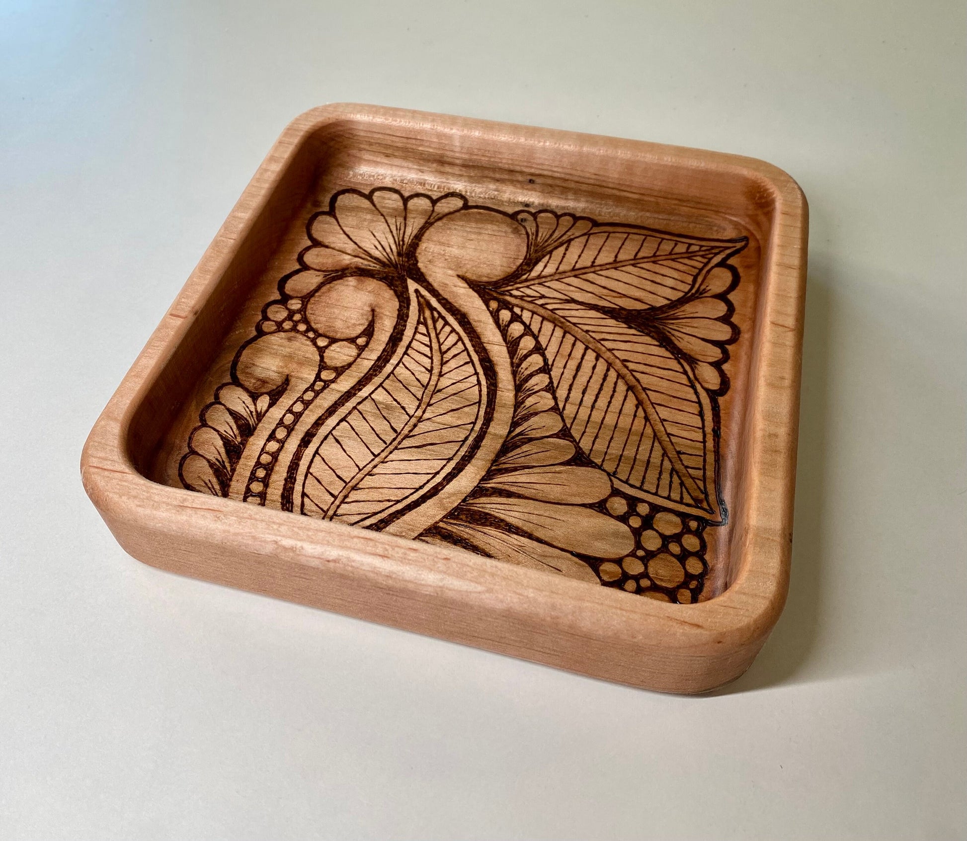 Handmade Keepsake/Valet Tray - Zentangle Design - Hand Drawn (no lasers) - Woodburned (Pyrography)