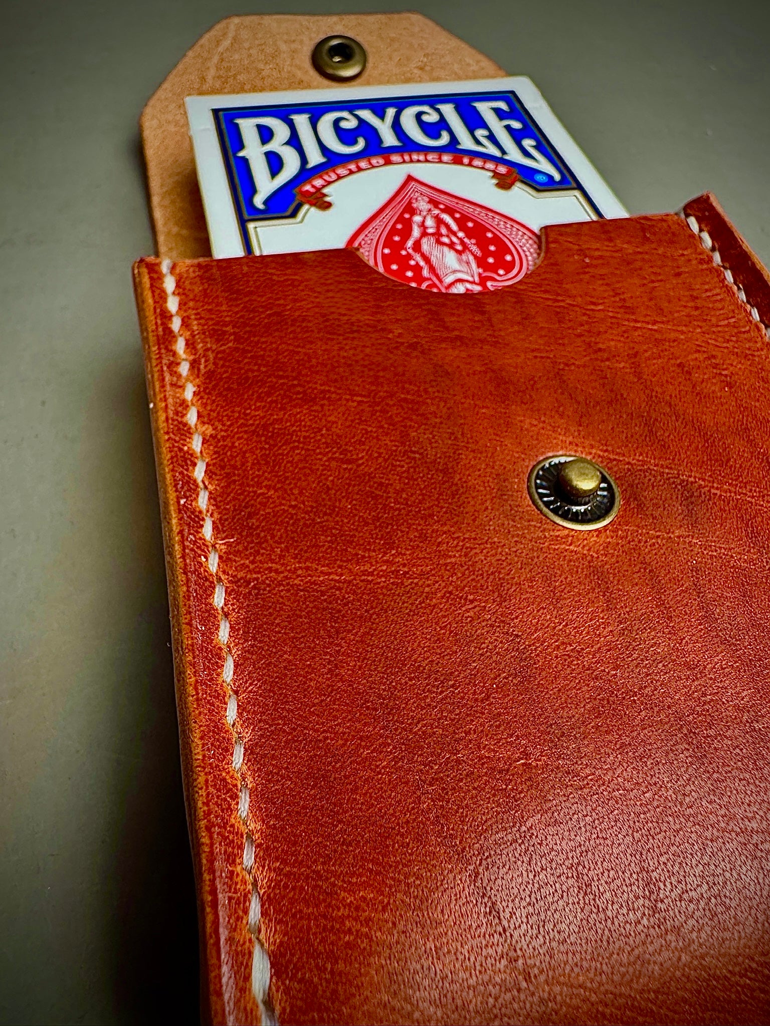 Carry your deck of playing cards anywhere you go with this handsome leather case.