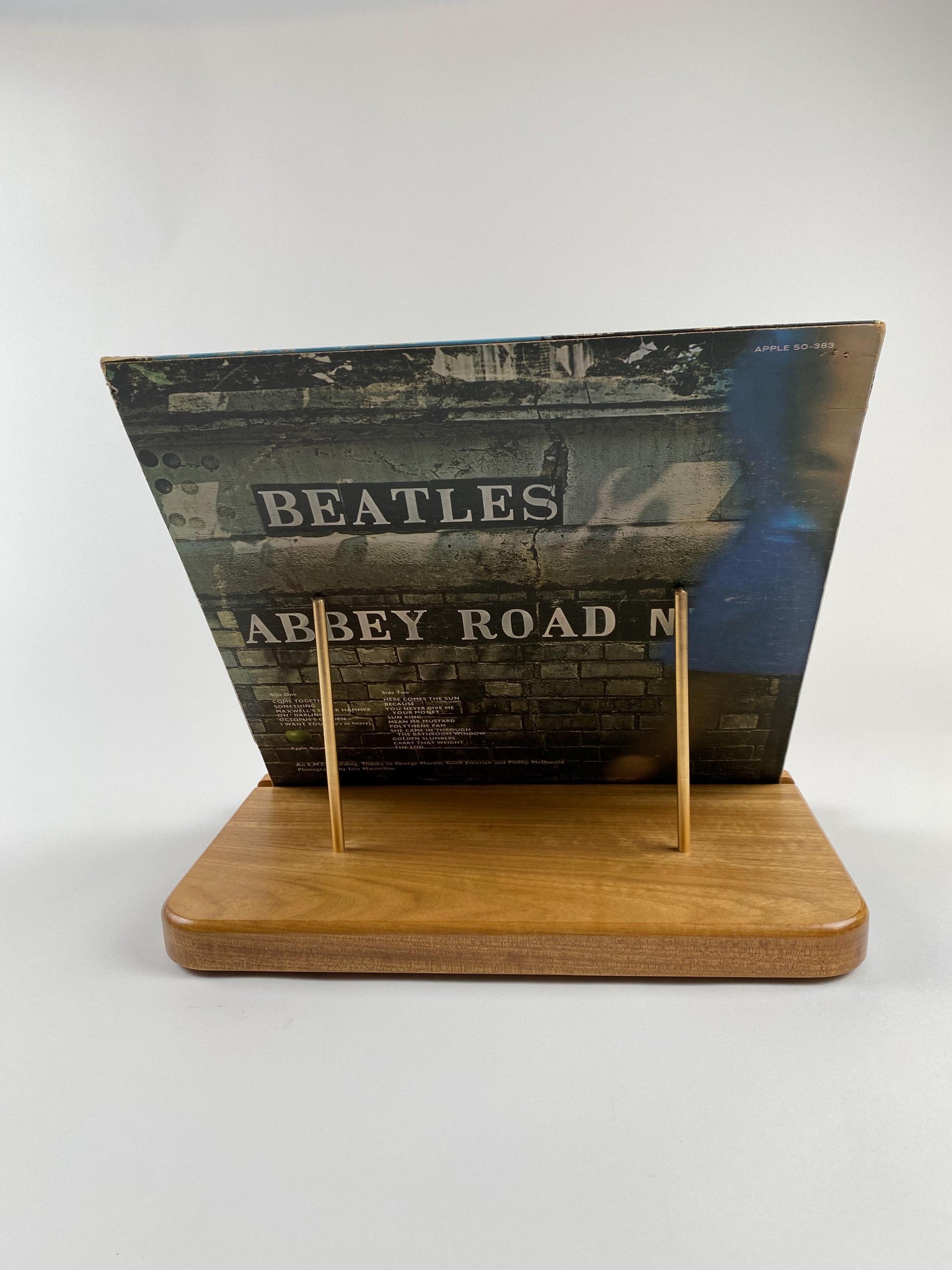 Handmade Record Display - Brazilian Oak with Brass Rods - Wooden Vinyl Album Display